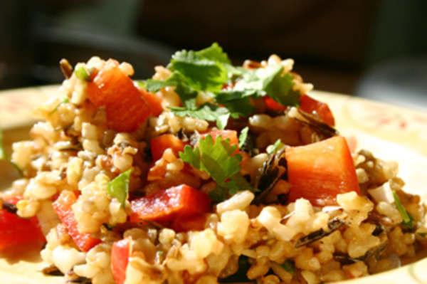 Рецепт простого салата из риса, моркови, помидоров и огурцов, который обязательно придется по вкусу постящимся и вегетарианцам