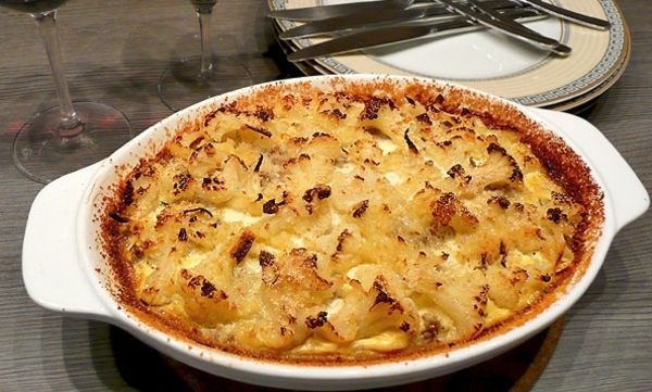 За это время цветную капусту разделить на крупные соцветия и бланшировать 5 минут в подсоленной воде.