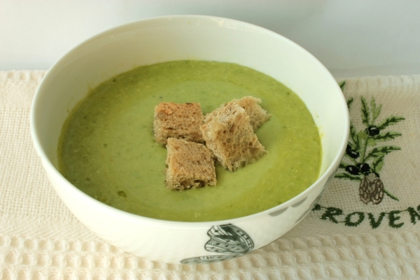 Для гренок хлеб нарезать кубиками и подсушить в духовке или на сковороде. Подавать суп горячим, посыпав гренками.