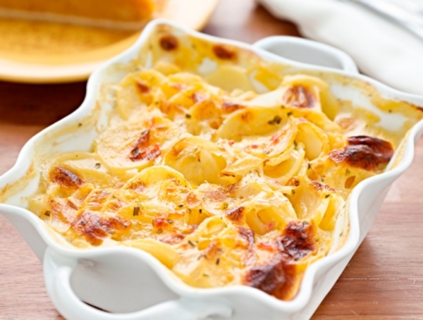 Форму для запекания смазать подсолнечным маслом и выложить печень. Посыпать нарезанной петрушкой и тертым сыром. Затем выложить слой картофеля, посыпать пармезаном и поставить на 15 минут в духовку, разогретую до 200°С.