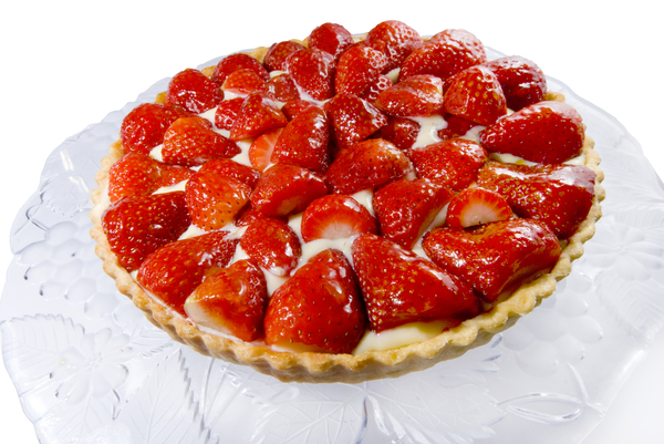 Наполнить тарт заварным кремом, украсить клубникой, сахарной пудрой и листиками мяты.