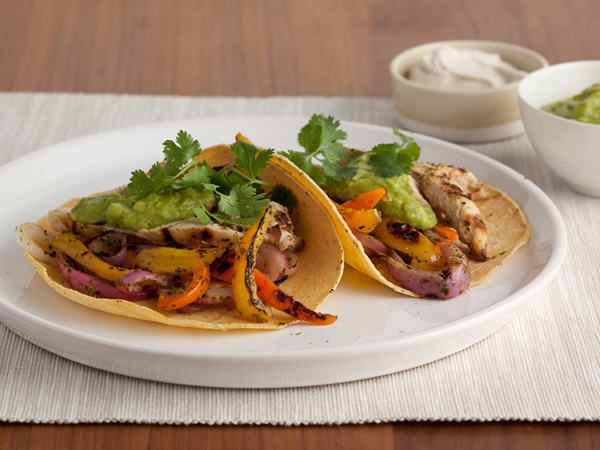 Переложить готовые овощи в миску, накрыть фольгой и обжаривать курицу в течение 2-2,5 минут с каждой стороны, чтобы ни в коем случае не пересушить ее (если не уверена – разрежь один кусочек, и если мясо внутри стало белым, сразу же снимай сковороду с огня). Подавай с тортильями и сметаной, гуакамоле и сальсой, чтобы каждый гость сам свернул себе фахитас с порцией овощей и мяса и приправил по своему вкусу.