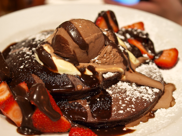 Разогреть сковороду с небольшим количеством масла и жарить оладьи на среднем огне. Подавать с шоколадным соусом или с мороженым.