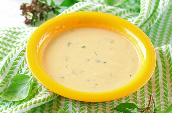 Крем-суп из цветной капусты с чесноком, сыром и зеленым базиликом