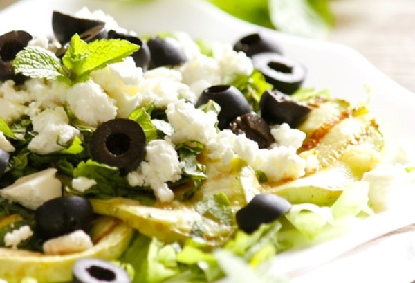 Освежающий салат из запеченных кабачков, феты, маслин и мяты