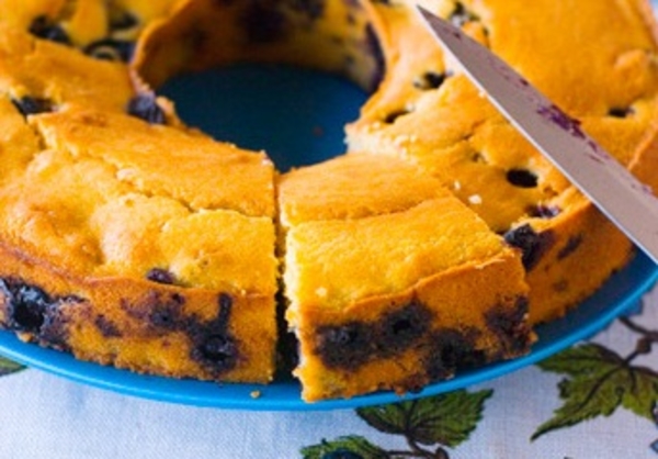 Взбить белки в устойчивую пену. Аккуратно ввести белковую массу в тесто. Все хорошо перемешать до однородного состояния. Добавить промытую чернику, перемешать.