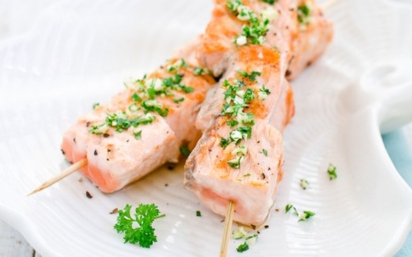 Шашлычки из семги с чесночной приправой и зеленью - отличное блюдо для летнего пикника