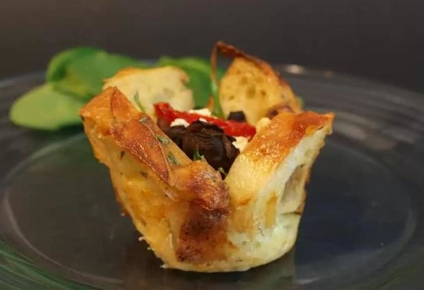 Хлебные чашечки с грибами и помидорами