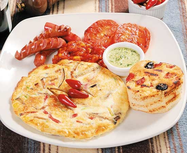 Готовим вкусный завтрак в мексиканском стиле: золотистый омлет с овощами и острым соусом