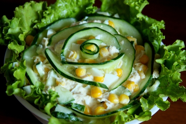 Новогодние рецепты: Салат из огурцов с кукурузой