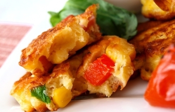 Оладьи с кукурузой, ветчиной и сладким перцем
