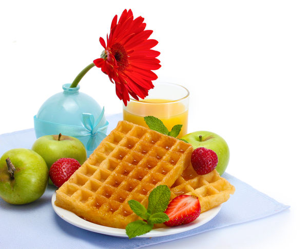 Подавать бельгийские вафли теплыми, полив жидким медом.