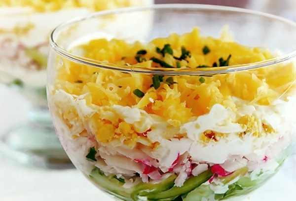 3 слой - крабовые палочки и майонез;
