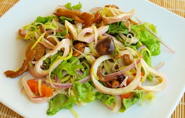 Салат из кальмаров с опятами