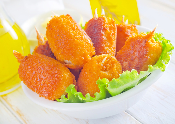 Рыба в панировке готова! Для удобства подачи в кусочки жареной рыбы можно воткнуть деревянные зубочистки.