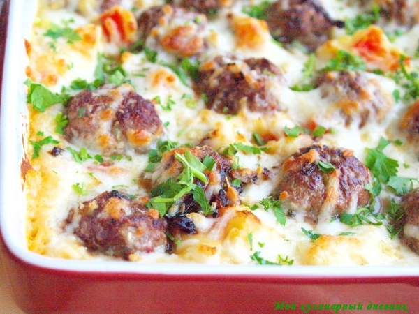 Картофельная запеканка с фрикадельками