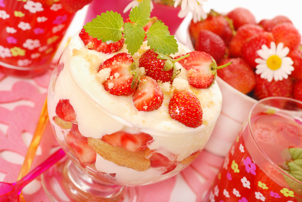 8. Перед подачей украсить десерт ломтиками свежей клубники.