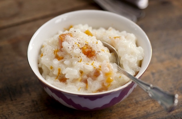 1. Довести кокосовое молоко до кипения, всыпать промытый рис и варить на слабом огне до готовности, периодически помешивая. Посолить.