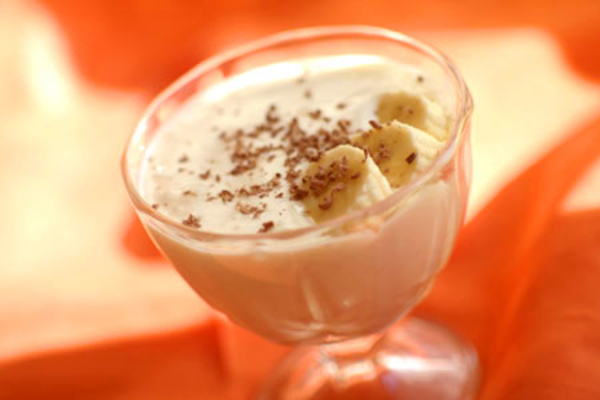 3. Готовый десерт разложить в креманки и украсить кусочками бананов.