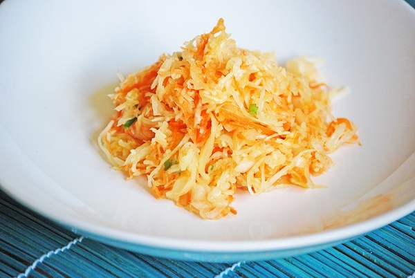 Полезный и очень простой весенний салат из редьки, моркови и квашеной капусты