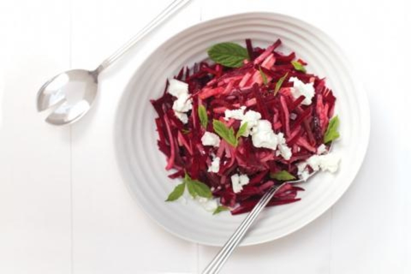 Салат из свеклы, моркови, груши и феты и цитрусовой заправкой