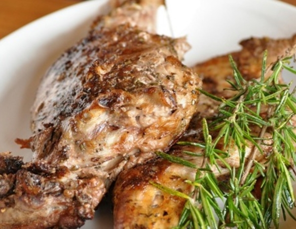 Рецепт приготовления запеченной бараньей ноги с розмарином и чесноком.