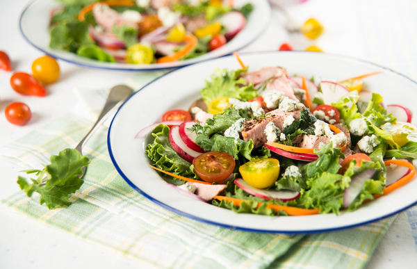 Готовим весенний салат из редиса, помидоров, феты и запеченного лосося.