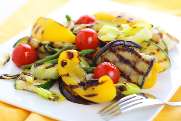 5. Сковороду гриль разогреть, выложить одним слоем овощи и жарить по 1-2 минуты с каждой стороны.