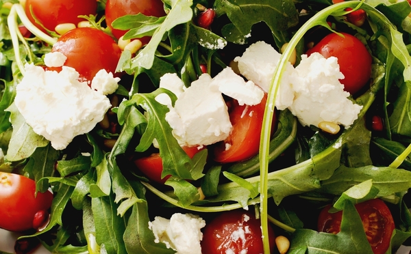 Салат из рукколы с фетой и помидорами черри