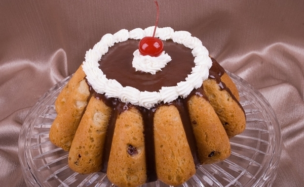 3. Готовую бабу украсить шоколадной глазурью и взбитыми сливками.