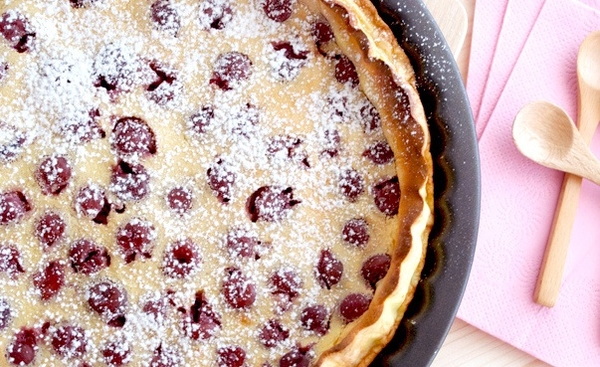 4. Форму для выпечки смазать сливочным маслом, вылить тесто, сверху равномерно распределить ягоды.