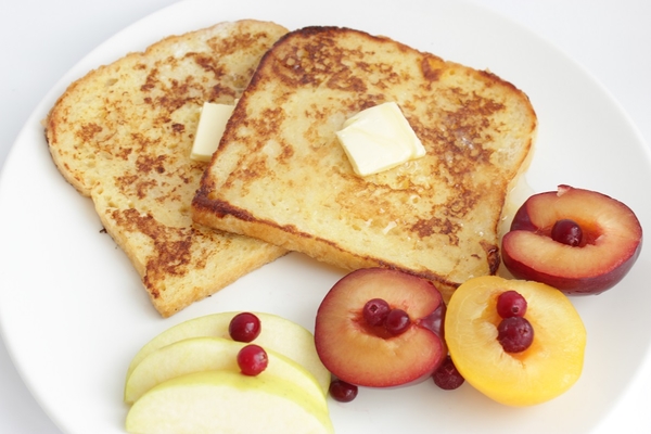 3. Подавать готовые тосты с медом и кусочками сливочного масла, украсив ягодами и нарезанными фруктами.