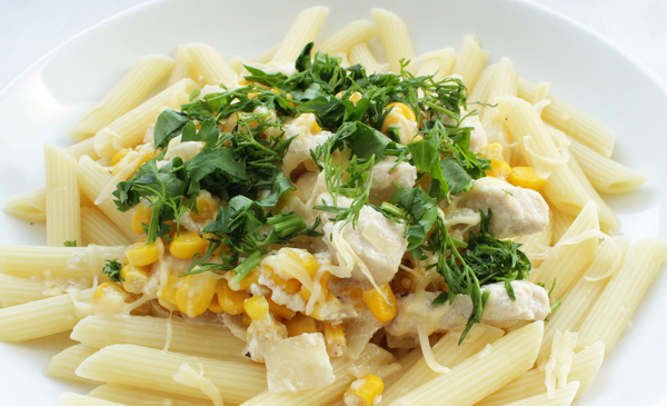 Паста с кукурузой, зеленью и сыром