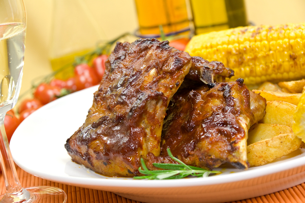 Свиные ребрышки на гриле с кукурузой