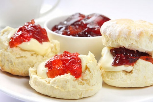 5. Оставшееся тесто собрать, опять раскатать и вырезать кружочки. Кисточкой удалить излишки муки и смазать поверхность молоком или сливками. Выпекать около 15 минут на среднем уровне до золотистого цвета , проверить готовность деревянной зубочисткой. Охладить на решетке. Подавать со взбитыми сливками или джемом. Особенно вкусны сконы в день выпечки, но они могут и храниться несколько дней.