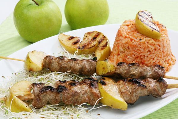 Крученая курица на шпажках с яблоками, чесноком и карри – отличная горячая закуска