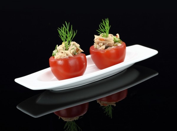 Готовим простую и вкусную закуску: фаршированные помидоры с начинкой из консервированного тунца