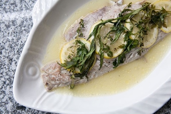 Рецепт трески, запеченной с лимоном, пряными травами и белым вином