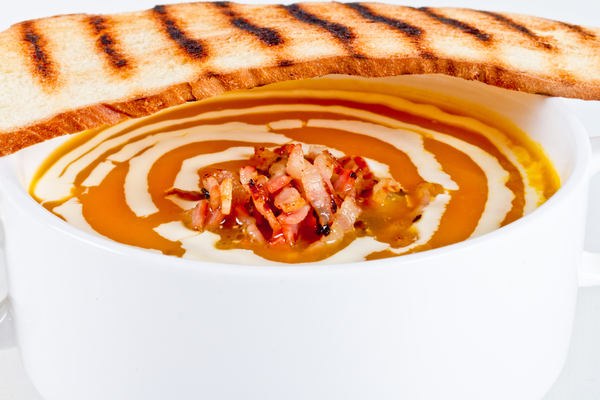 Рецепт осеннего супа из тыквы с беконом и гренками