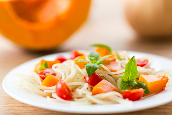 Спагетти с помидорами и тыквой