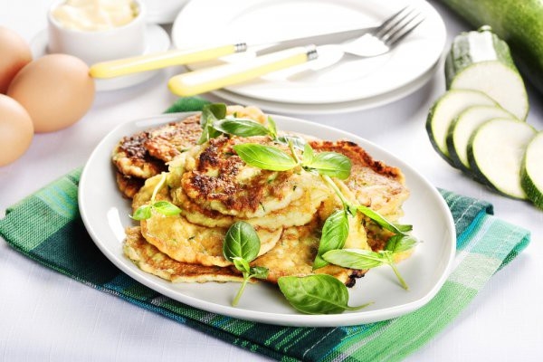 1. Натереть на крупной терке цуккини и очищенный лук. Добавить муку, яйцо, соль, раздавленный чеснок и перемешать.