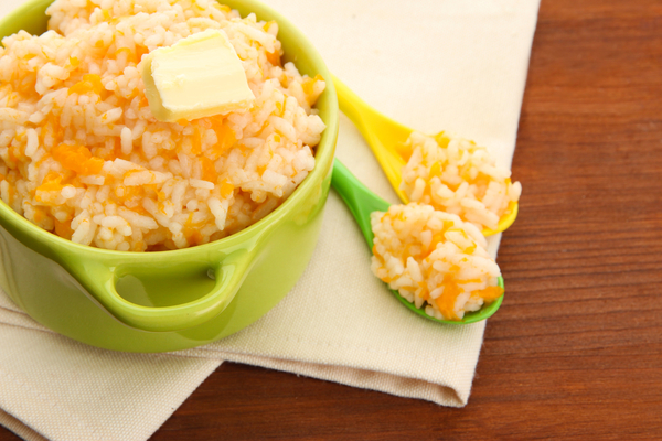 3. Смешать готовый рис, тыкву, рубленые орехи и сливочное масло. Перемешать.