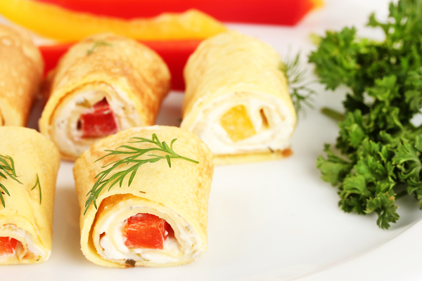 Роллы из омлета с помидорами