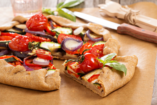 Рецепт постной галеты с овощной начинкой, пряностями и луковым соусом.