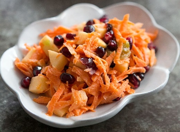 3. Поместить тертую морковь и нарезанные яблоки в большую миску. Полить соком лайма и перемешать.