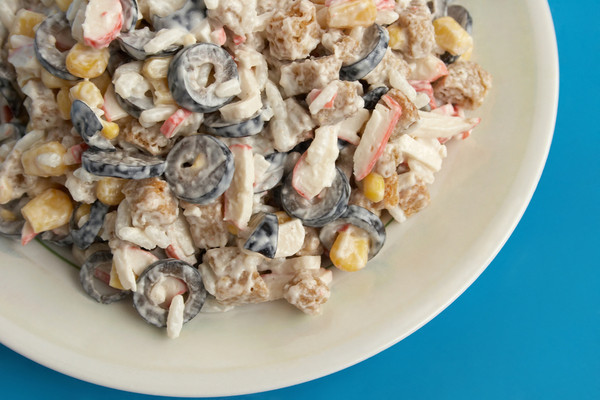 Новогодний салат из крабовых палочек и маслин