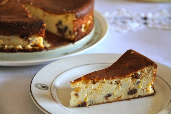 Готовим пирог из творога с лимонной цедрой, изюмом и ванилью.