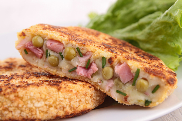 Картофельные оладьи с ветчиной и горошком