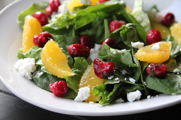 7. После того, как клюква остынет, перемешать все ингредиенты для салата, полить заправкой.