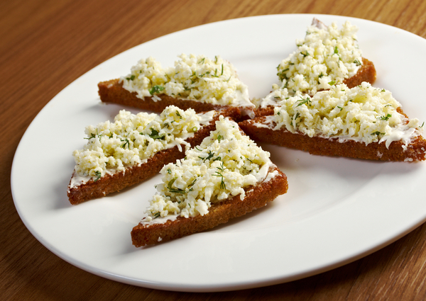 1. Ломтики тостового хлеба разрезать пополам на треугольники. Подсушить в духовке или на сухой сковороде.